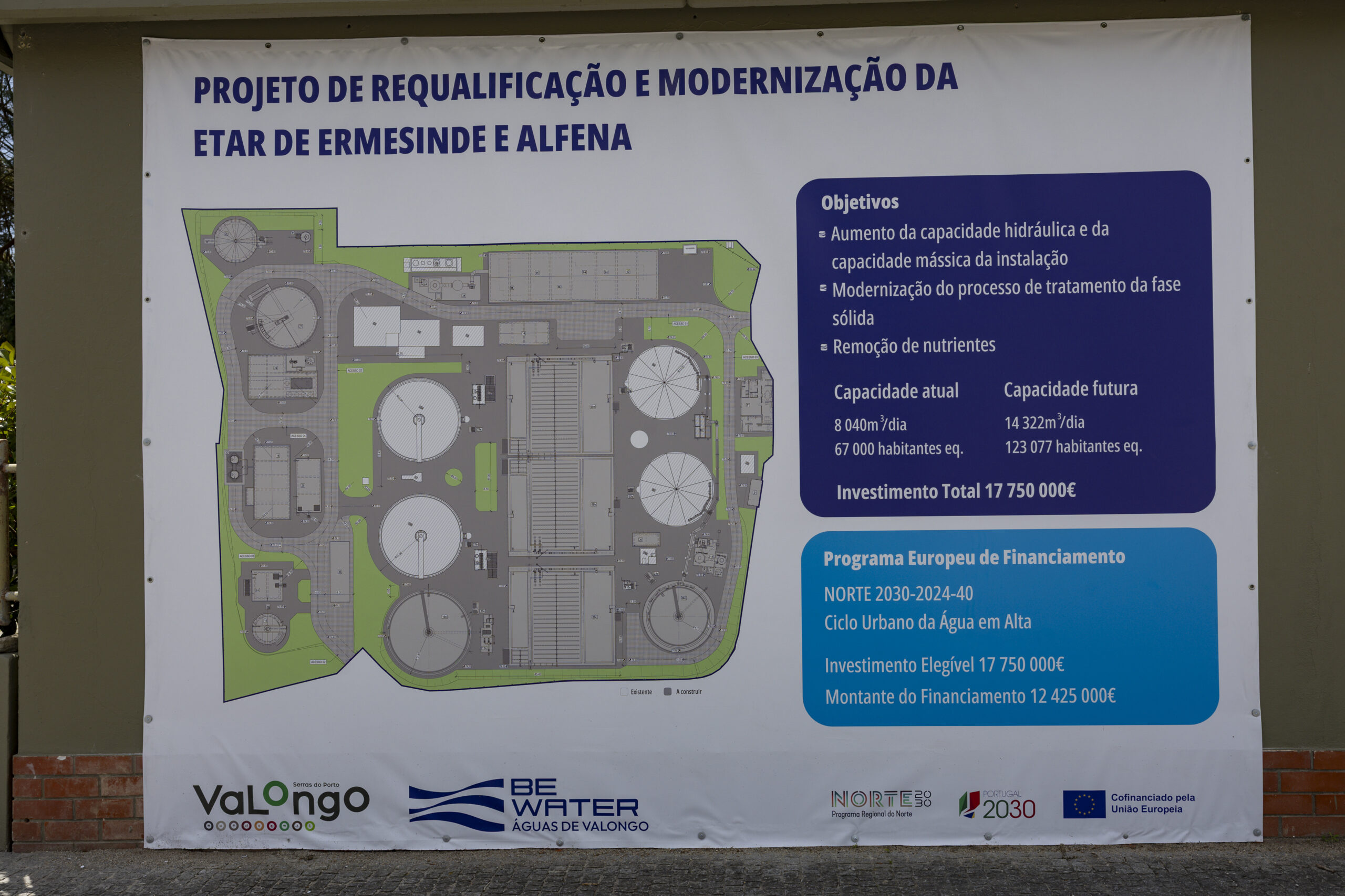 Para fazer face às novas necessidades foi desenhado um projeto que inclui a construção de uma nova estação elevatória de efluente bruto e um novo tratamento preliminar, a construção de uma terceira linha de tratamento com novos reatores biológicos, adaptados para a remoção de azoto total e fósforo total e a inclusão de uma etapa de digestão anaeróbia de lamas com valorização do biogás em cogeração. Esta requalificação está dimensionada para permitir um aumento da capacidade de tratamento para 14 322 m3/dia e a produção de energia elétrica em cogeração melhorando significativamente a eficiência de global da instalação e os serviços de saneamento no concelho de Valongo, indo assim ao encontro das exigências da nova diretiva de águas residuais urbanas.